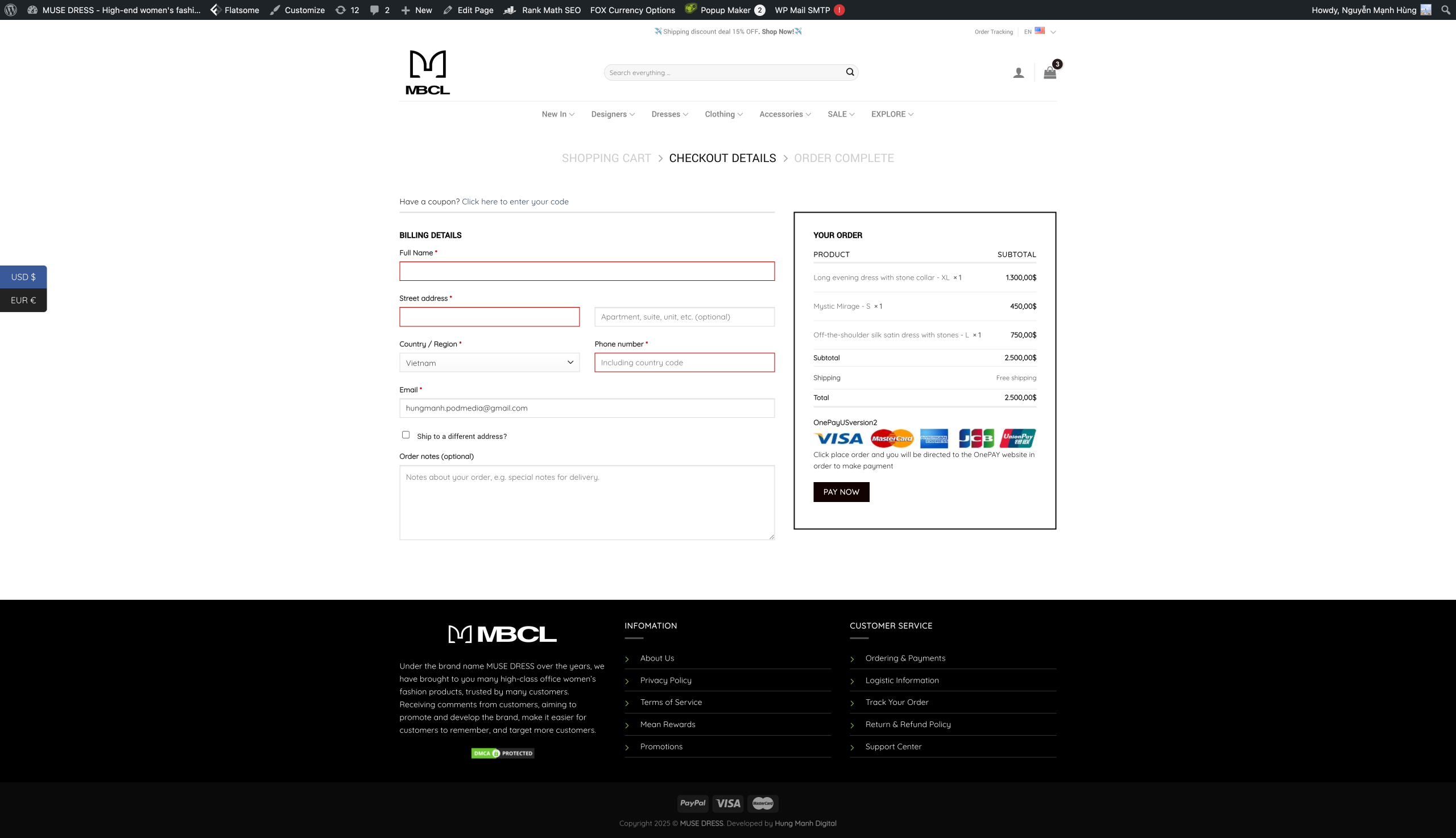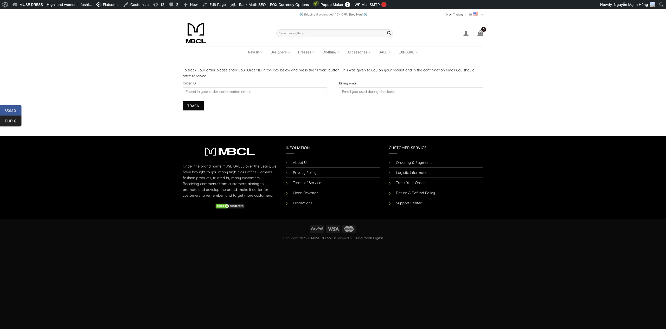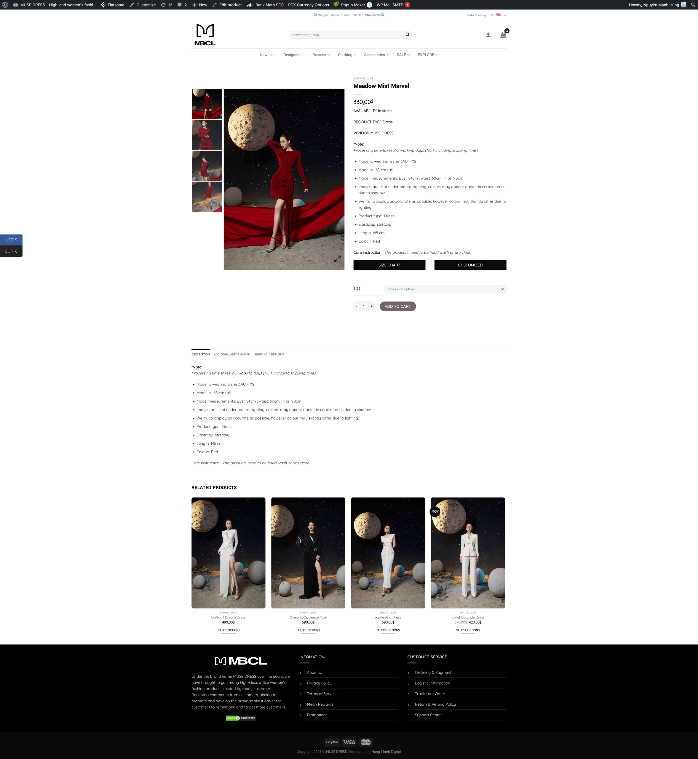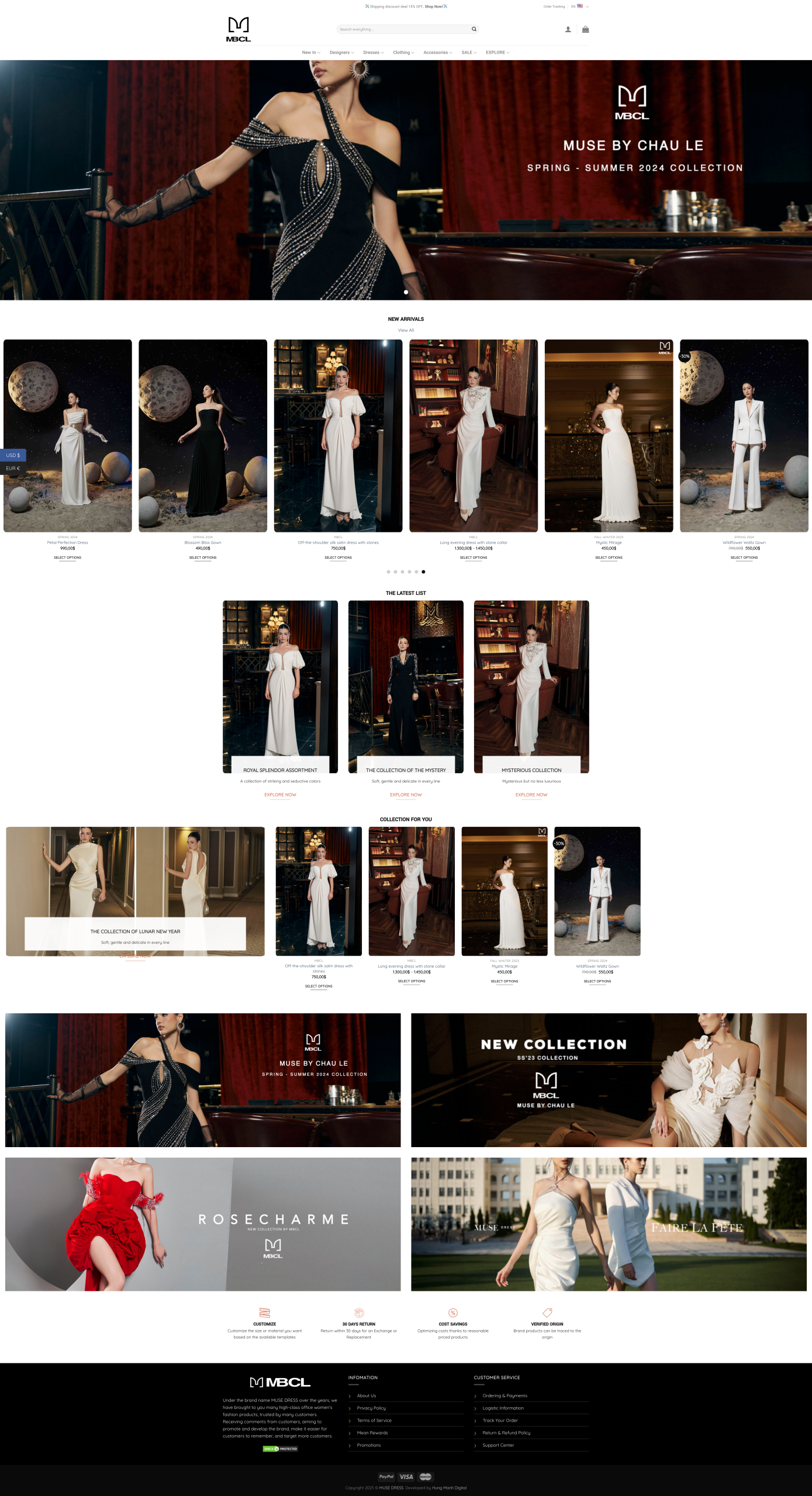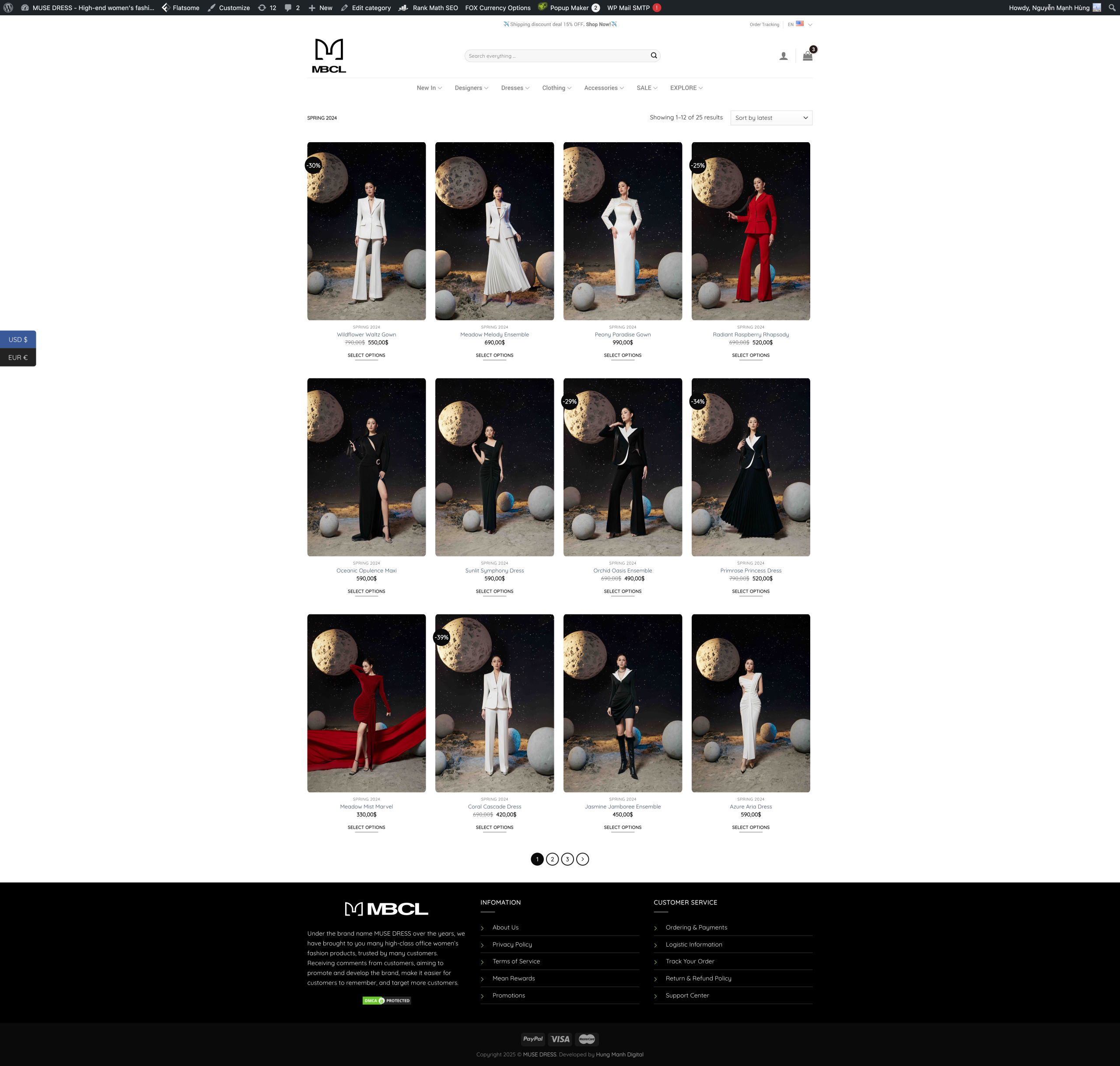 Website được xây dựng trên nền tảng WordPress kết hợp với WooCommerce, cho phép đội ngũ Muse Dress dễ dàng quản lý sản phẩm, đơn hàng và nội dung. Giao diện được thiết kế theo phong cách tối giản, sang trọng, tập trung vào việc làm nổi bật sản phẩm thông qua hình ảnh chất lượng cao và bố cục thoáng đãng.